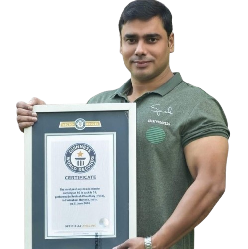 Rohtash Chaudhary is a globally recognized fitness athlete and multiple-time world record holder in push-up challenges. Born in a small village in India, he turned adversity into achievement—overcoming personal hardships and a major accident to rise as a symbol of resilience and strength.